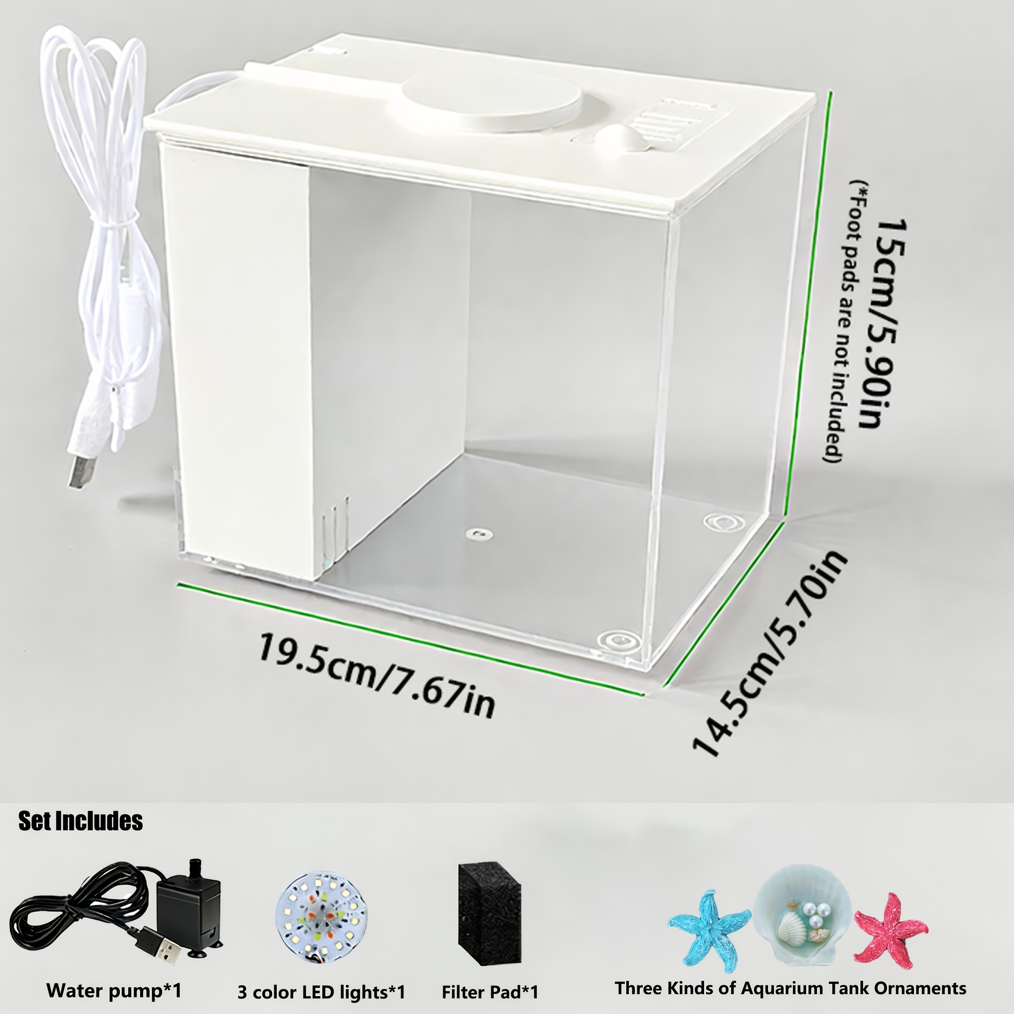 Smart LED Aquarium Kit - Featuring a USB Charging Port And Cleaning Technology, Suitable for Small Fish Tanks in Homes, Bedrooms, And Office Desks, Equipped with a Water Pump, Aquarium Light, And Resin Decorative Ornaments